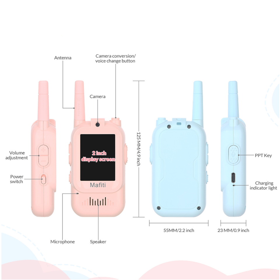 เครื่องส่งรับวิทยุสำหรับเด็กสุดสร้างสรรค์เอฟเฟกต์เสียงเจ๋งแบบ2ทิศทางสำหรับวันเกิดวันคริสต์มาสกลางแจ้งอายุ3-12ปี