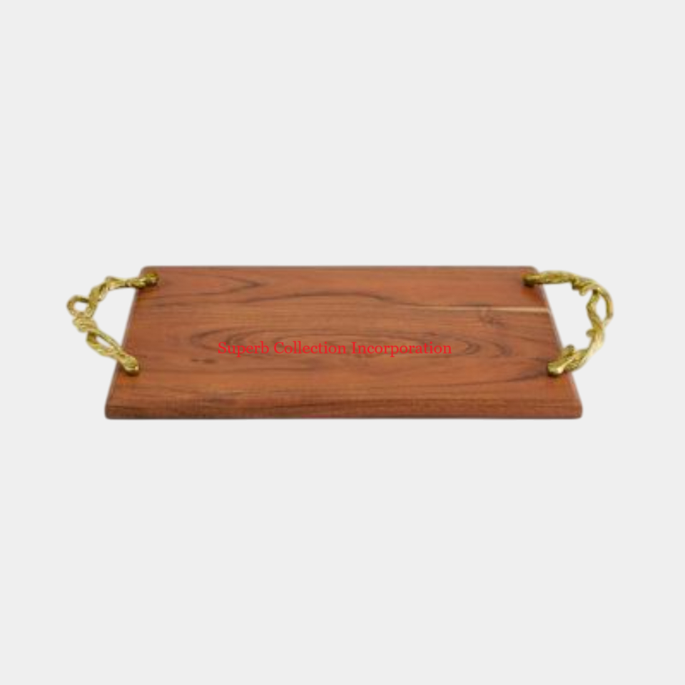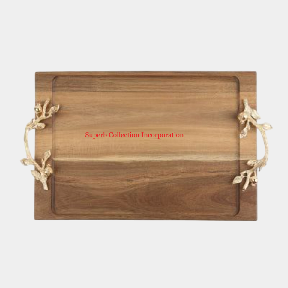ถาดเสิร์ฟไม้ขนาดใหญ่สุดสร้างสรรค์พร้อมที่จับเครื่องเงินลายนกชามก๋วยเตี๋ยวสำหรับจัดเลี้ยงอาหาร