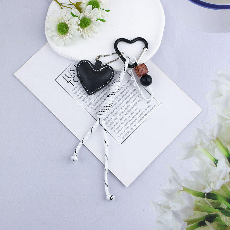 พวงกุญแจหนังรูปหัวใจสุดสร้างสรรค์ทำจากโลหะผสมเชือกรูปโซ่ประดับกระเป๋าสไตล์สดใสอเนกประสงค์สำหรับคู่รัก