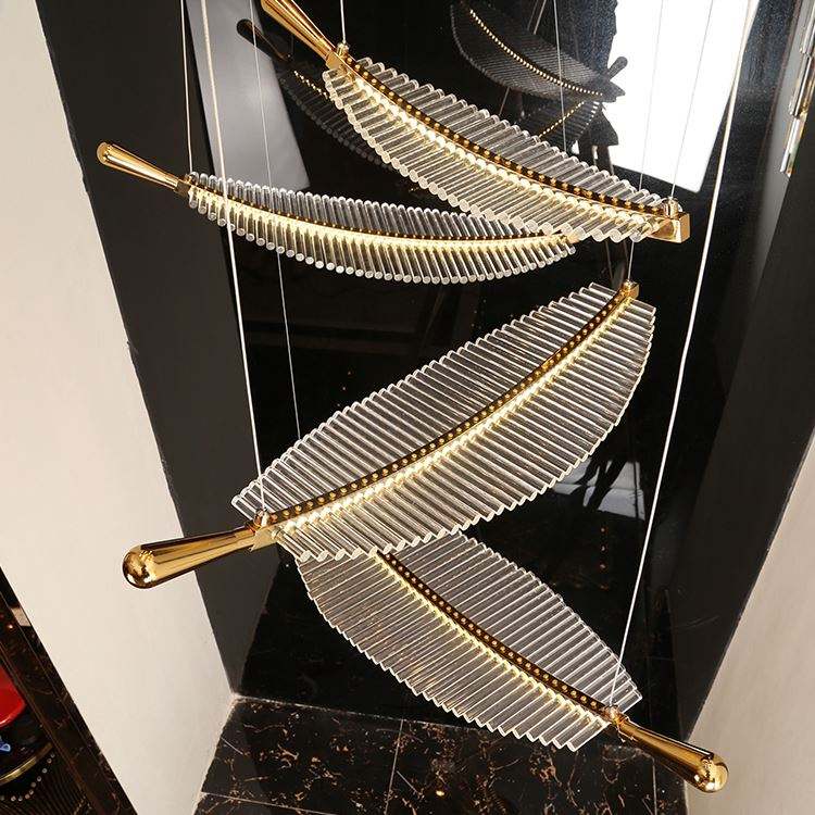 โคมไฟระย้ารูปขนนก LED สุดสร้างสรรค์โคมไฟระย้าแก้วอันทันสมัยสำหรับโรงแรม