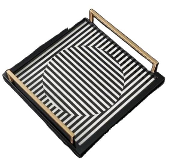 ถาดเสิร์ฟผลไม้ทำจากเรซินอีพ็อกซี่พร้อมที่จับทำจากไม้