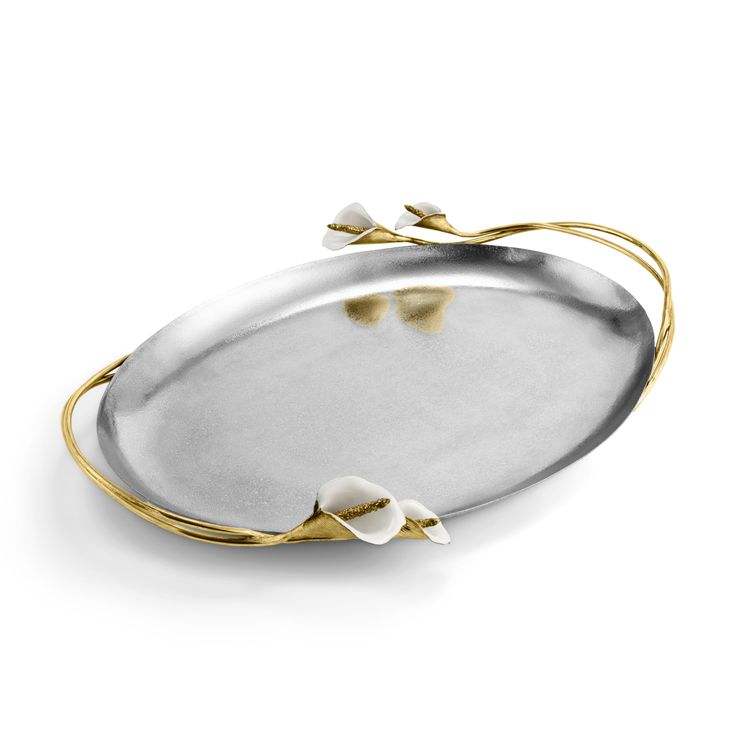 ถาดเสิร์ฟโลหะดีไซน์รูปวงรีเคลือบนิกเกิลลายตอกแบบสร้างสรรค์ สวยงาม ทนทาน ใช้งานได้หลากหลาย ตกแต่งธีมดอกไม้และผลไม้