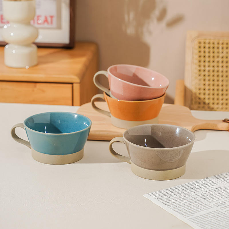 แก้วเซรามิกมินิมอลสุดสร้างสรรค์พร้อมหูจับเคลือบสีน้ำเงิน แก้วเดี่ยวสำหรับใช้ในบ้าน สไตล์นอร์ดิก ฤดูร้อน 2024