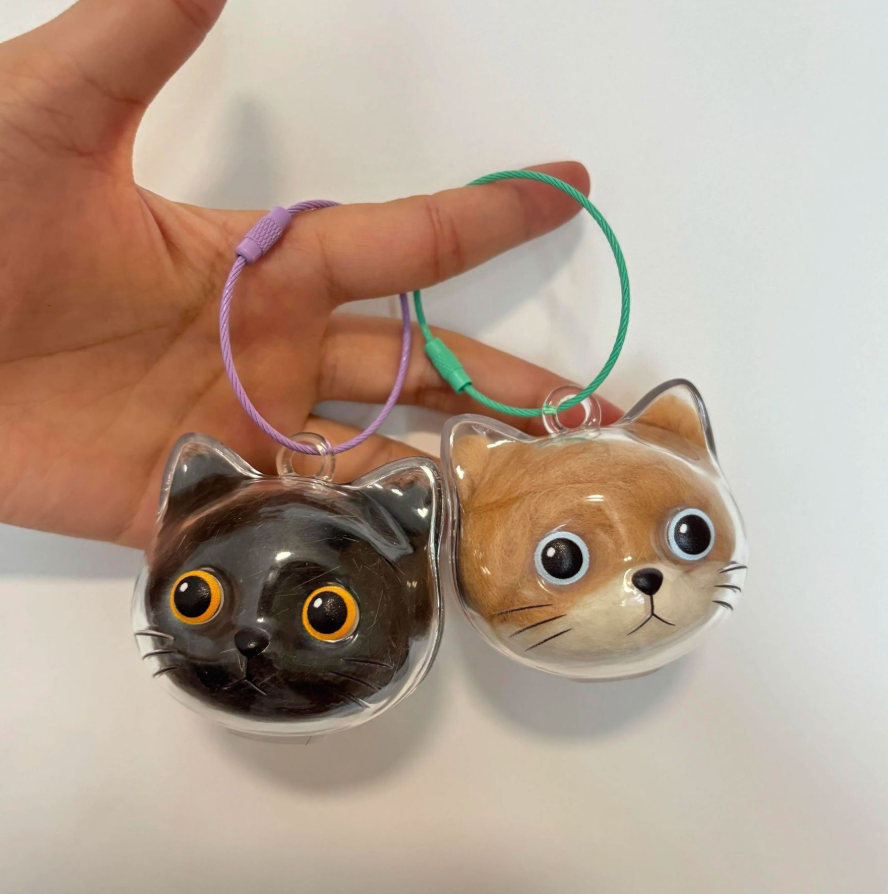 พวงกุญแจรูปใบหน้าแมวทันสมัยสุดสร้างสรรค์จี้เรซินน่ารักจี้ขนาดเล็กสำหรับสัตว์เลี้ยงที่ระลึกรูปทรงสี่เหลี่ยมผืนผ้านำกลับมาใช้ใหม่ได้เป็นมิตรต่อสิ่งแวดล้อม