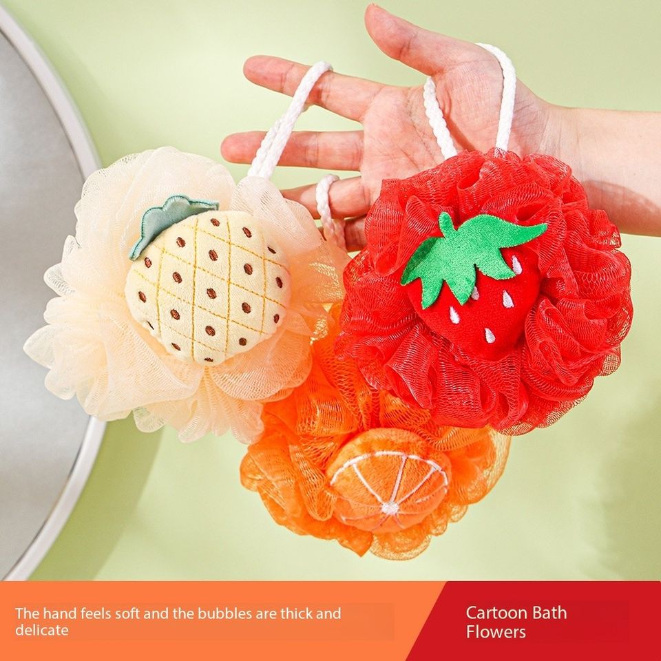 Creative Modern Flower-Shaped Fruit Bath Ball Cute PE Foam Tennis Scrubbing Bath Ball Hanging Design