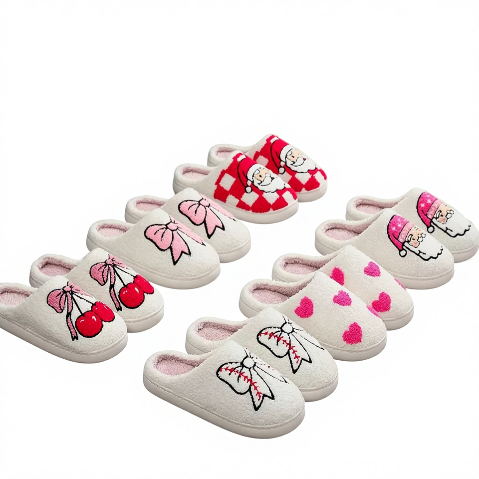 รองเท้าแตะของผู้หญิงกำมะหยี่ลายเชอร์รี่ KZ28ฤดูหนาว