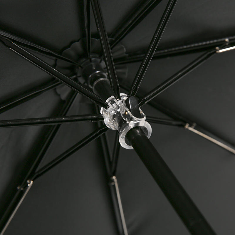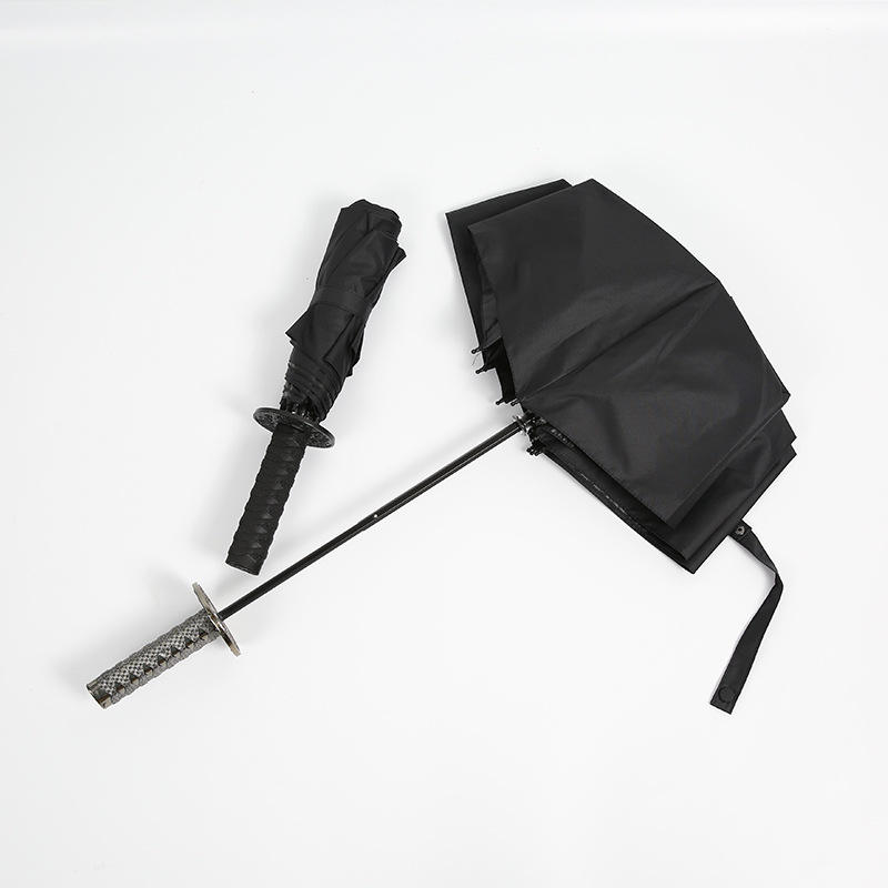 ร่มพับสามตอนสีดำดีไซน์สร้างสรรค์ ด้ามจับแบบด้ามดาบ ร่มกันแดด ร่มโฆษณา กึ่งอัตโนมัติ