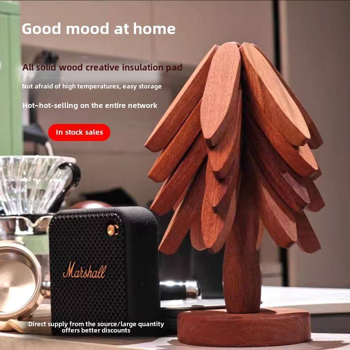 ชุดแผ่นรองจานไม้ฉนวนกันความร้อนที่ทำจากไม้บีชต้นไม้หนึ่งต้นที่สร้างสรรค์แผ่นรองแก้วไม้เนื้อแข็งกันลวก