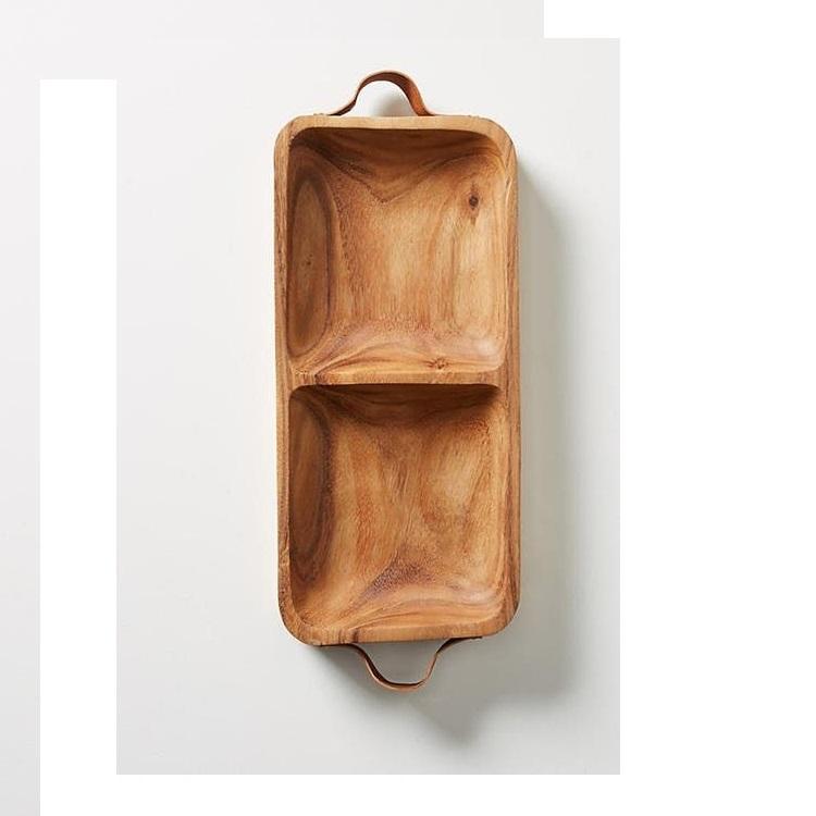 ถาดไม้ใส่ขนมหวานพร้อมที่จับโลหะแบบ SS อุปกรณ์รับประทานอาหารเช้าเครื่องครัวถาดชากาแฟ
