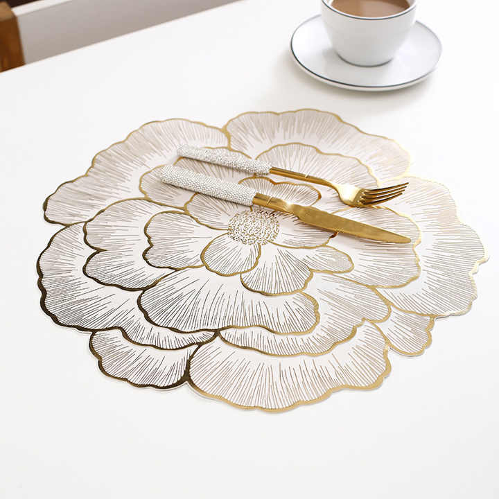 Creative Peony Flower Modern Style Eco-Friendly Decorative Gold Plated Home Cup Mat Leather Table Mat Thermal Insulation Mat