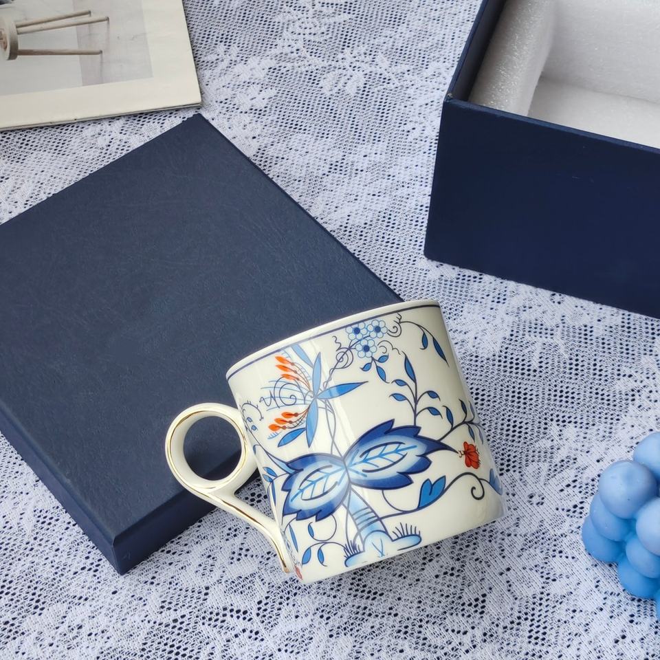 แก้วมัคกระดูกจีนสีน้ำเงินลายหัวหอม ดีไซน์สร้างสรรค์ เป็นมิตรต่อสิ่งแวดล้อม ใช้กับเครื่องล้างจานได้ ความจุ 260 มล. เหมาะสำหรับใช้ในสำนักงานและที่บ้าน ใช้เป็นภาชนะใส่อาหารได้