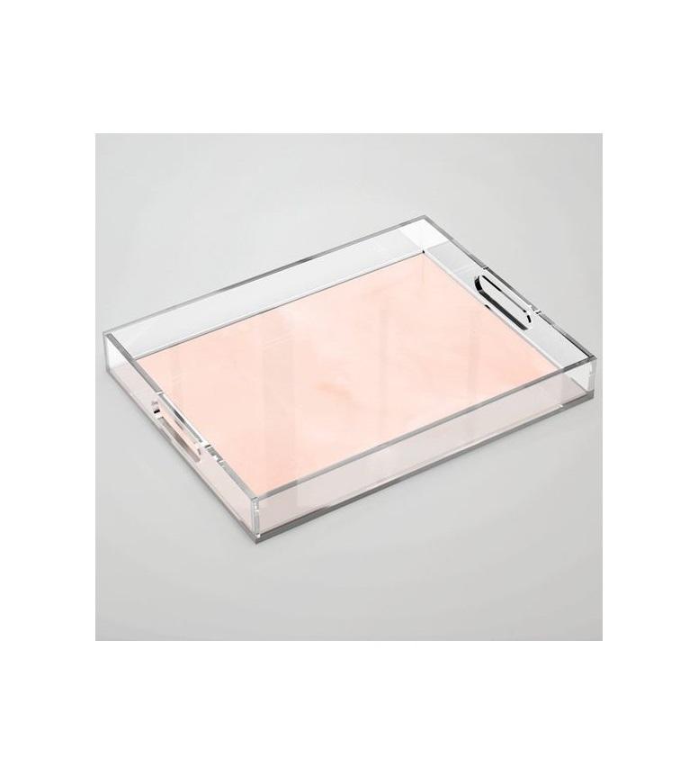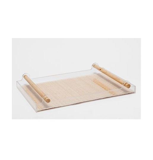 คุณภาพสร้างสรรค์พร้อมถาดอะคริลิคด้ามไม้ ถาดเสิร์ฟชากาแฟอะคริลิคดีไซน์คลาสสิก ถาดตกแต่งอะคริลิค