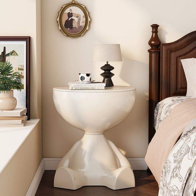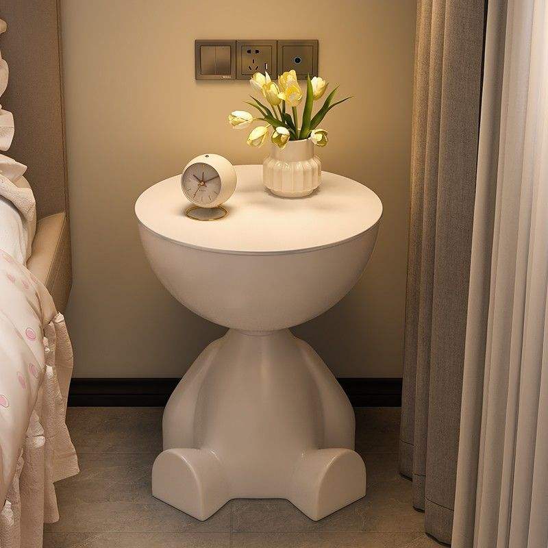 โต๊ะกาแฟเรซิ่นสร้างสรรค์แบบไม่ต้องทาสี สีครีม หน้าโต๊ะทรงกลม ขนาดเล็ก สำหรับห้องนั่งเล่น โซฟา ข้างเตียง มุมห้อง ใช้ได้ ปลอดภัยสำหรับเด็ก