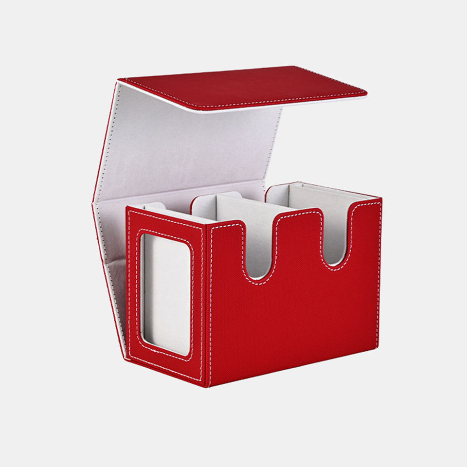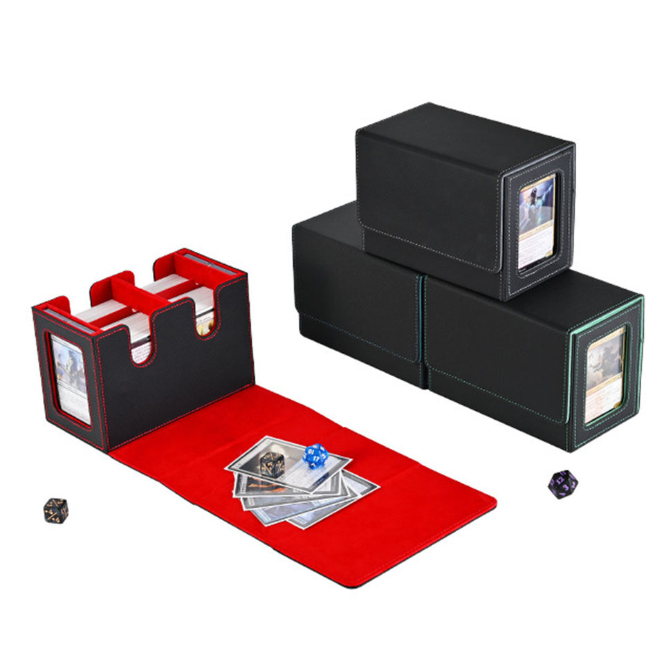 กล่องใส่การ์ดเกมแบบเปิดสองด้าน ดีไซน์สร้างสรรค์ อุปกรณ์เสริมสำหรับเกมกระดาน กล่องเก็บการ์ดสะสม หนัง PU แม่เหล็ก