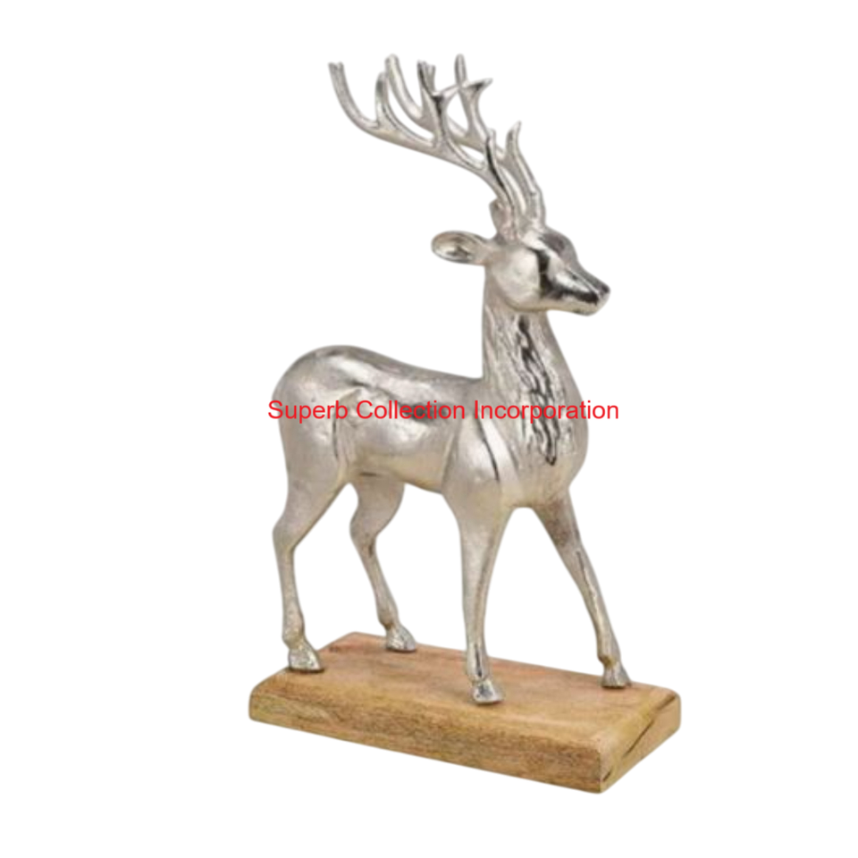 รูปปั้นเรนเดียร์ทำด้วยมือทำจากอะลูมิเนียมเงินสุดสร้างสรรค์รูปปั้นแกะสลักดีไซน์ทันสมัยสำหรับตกแต่งโต๊ะในบ้านและงานปาร์ตี้