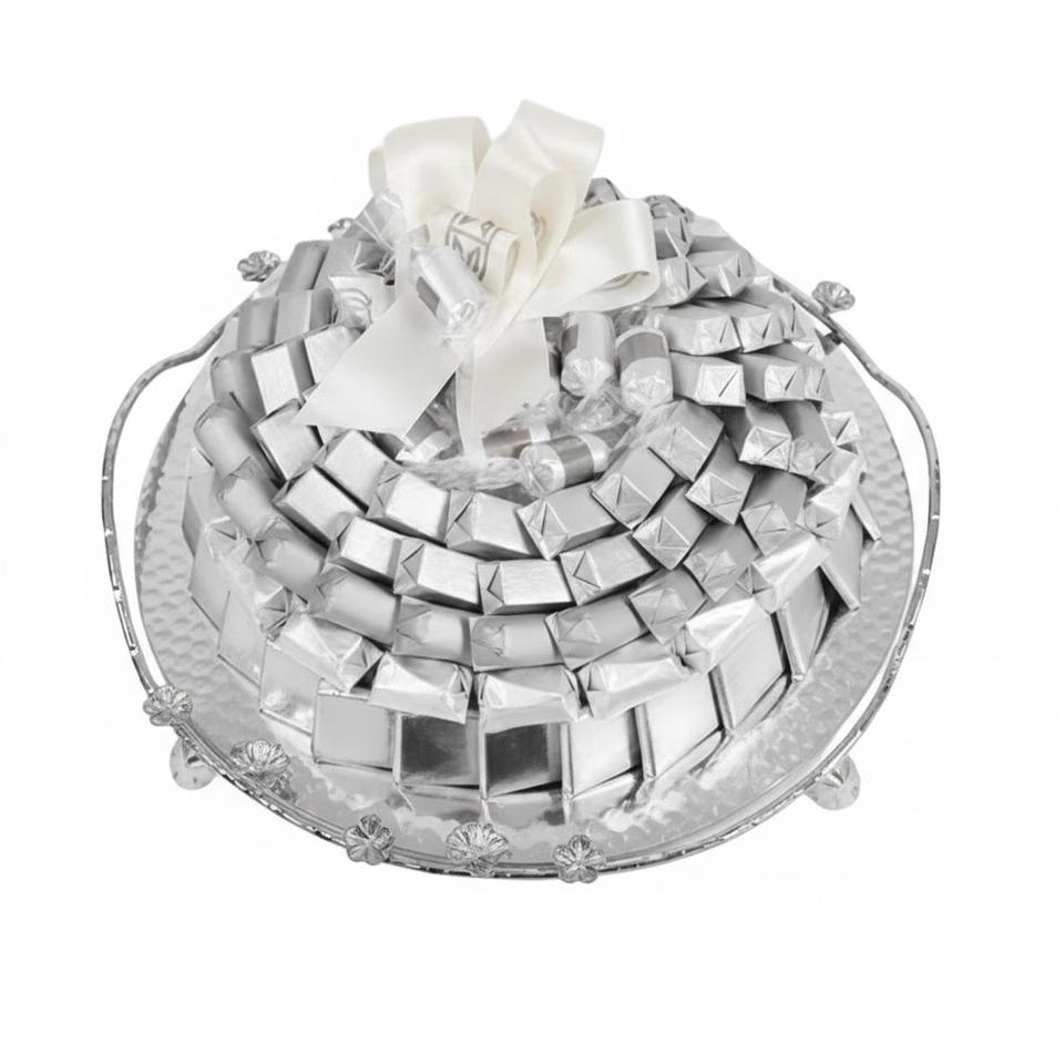 ถาดช็อกโกแลตโลหะชุบเงินดีไซน์สร้างสรรค์ ถาดเสิร์ฟขนมหวานสำหรับโรงแรม งานแต่งงาน หรือโอกาสพิเศษ