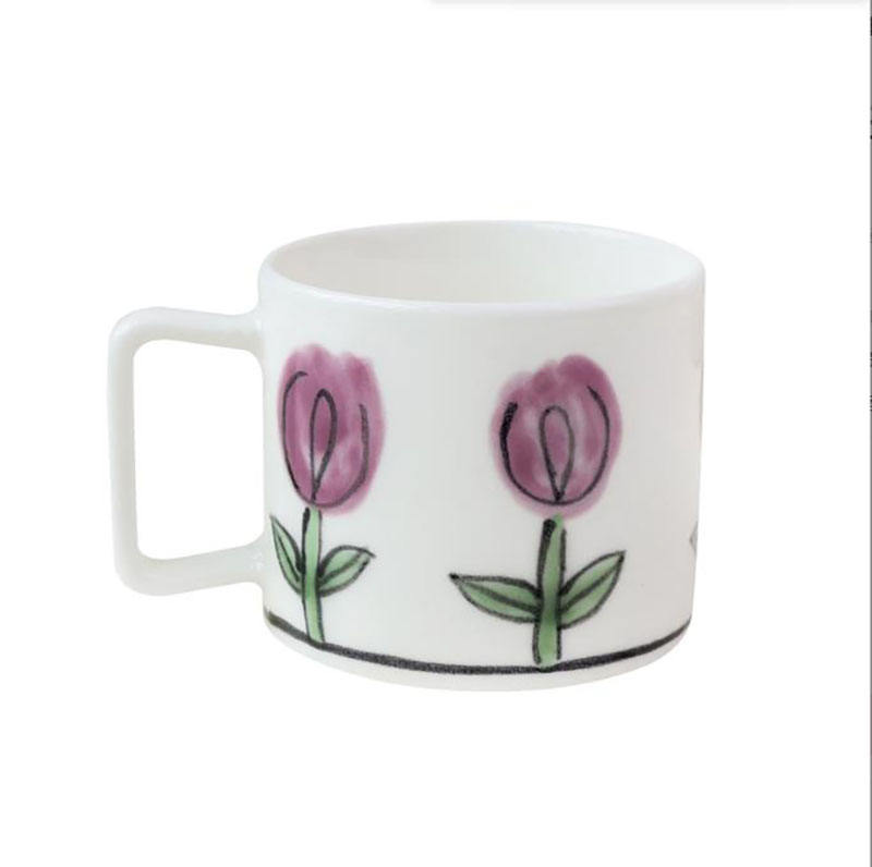 แก้วมักเซรามิกพิมพ์ลายดอกไม้สำหรับอาหารเช้าแบบสร้างสรรค์ถ้วยและจานสำหรับใส่น้ำชายามบ่ายแบบย้อนยุค