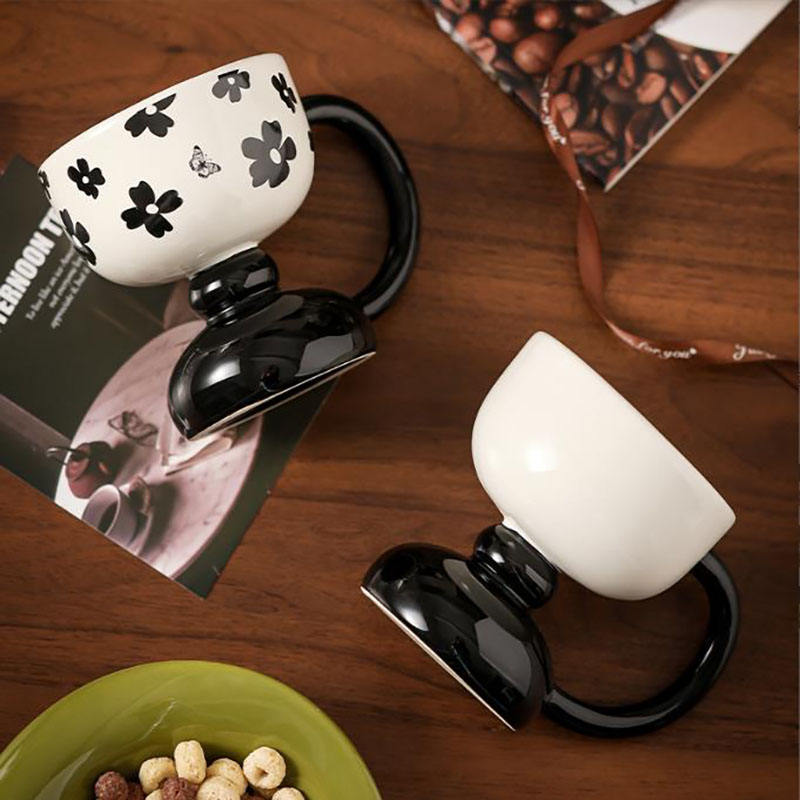 Creative Simple High-legged Breakfast Ceramic Mug Exquisite Ins Couple Afternoon Tea Ice Cream Cup