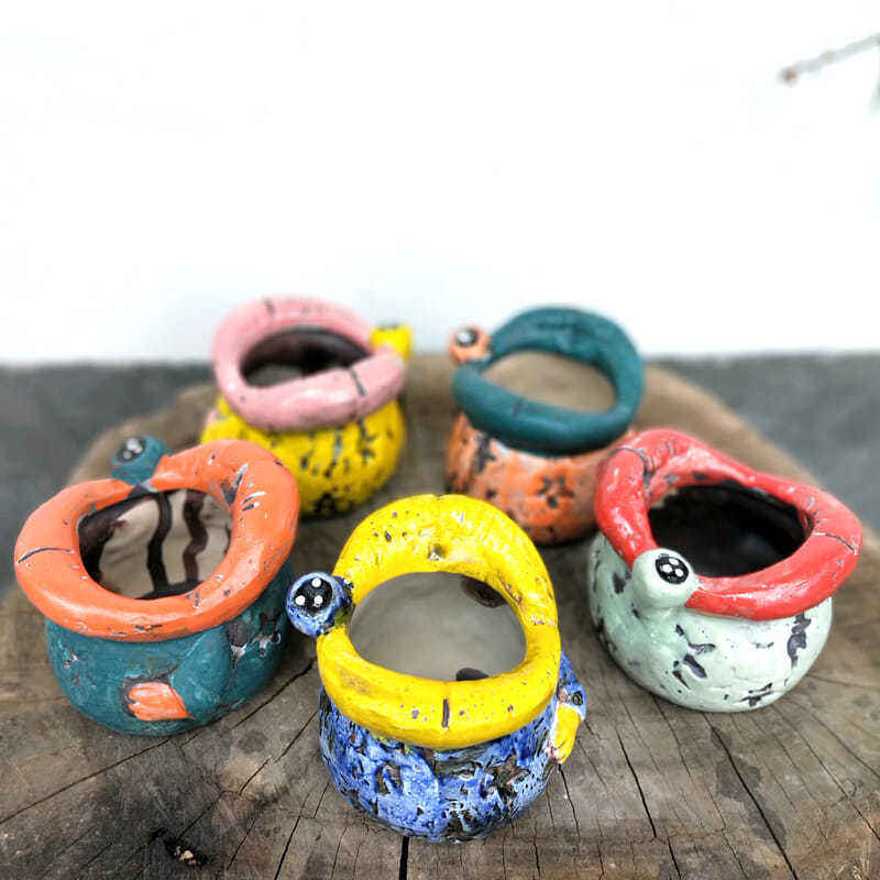 กระถางต้นไม้เซรามิกขนาดเล็ก ลายการ์ตูนมอนสเตอร์ปากเล็ก วาดด้วยมือ ลายลิโทปส์ วัสดุ PP เนื้อหยาบ ระบายอากาศได้ดี เหมาะสำหรับปลูกไม้อวบน้ำ ขนาดเท่าหัวแม่มือ