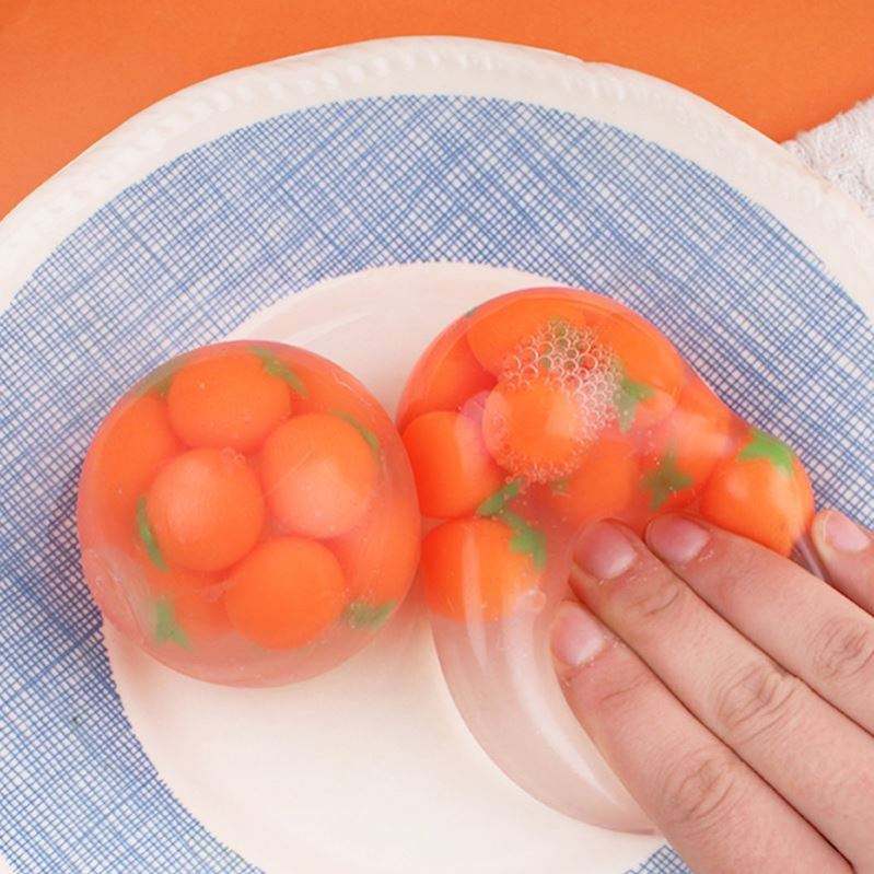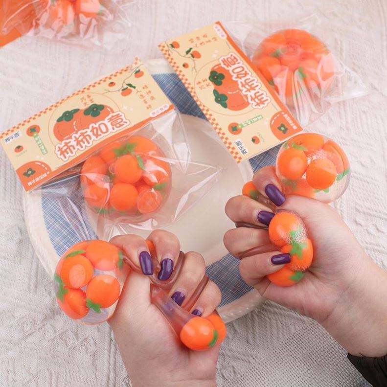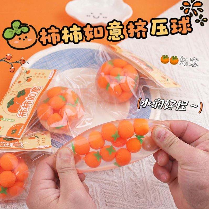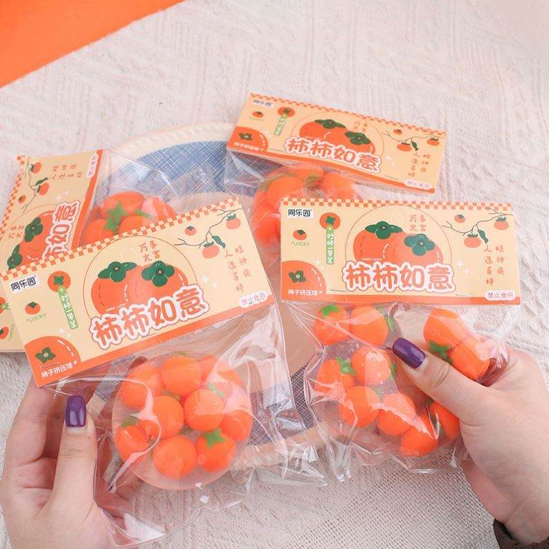 ของเล่นบีบรูปผลไม้ลูกพลับทำจากยางนิ่ม ของเล่นบีบคลายเครียดสำหรับเด็ก ลูกบอลบีบระบายอารมณ์