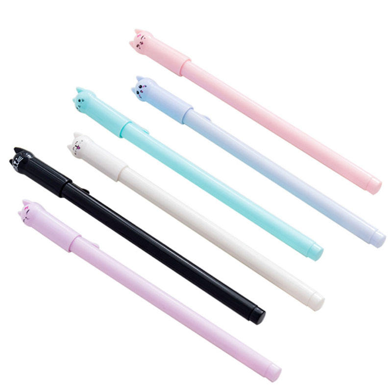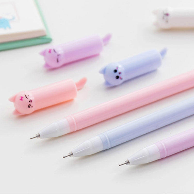 ปากกาเจลพลาสติกสีลูกกวาด ลายแมวหางสวิงน่ารัก สำหรับนักเรียน หัวเข็ม 0.5 มม. หมึกดำ