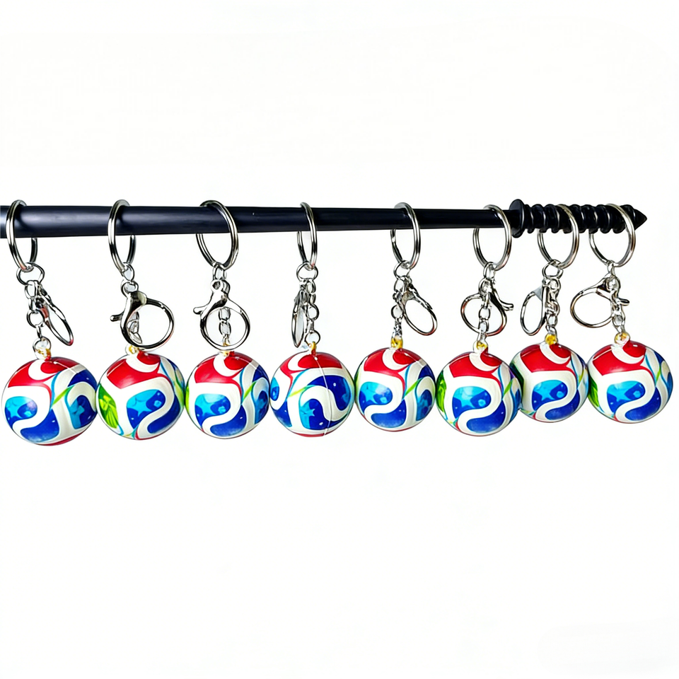 พวงกุญแจลูกฟุตบอลยางสเตอริโอสแตนเลสแบบกำหนดเอง ยืดหยุ่น ทนทาน ปลอดสารพิษ