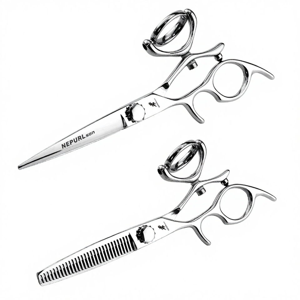 กรรไกรตัดผมดีไซน์ใหม่ทันสมัย สำหรับช่างทำผมมือซ้าย ทำจากสแตนเลสอย่างดี คม ทนทาน ด้ามยาว 30 ซี่ฟัน สำหรับซอยผม