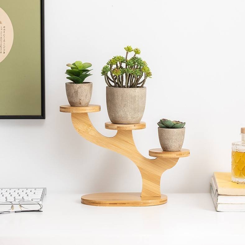 ที่วางต้นไม้แบบตั้งโต๊ะรูปกิ่งไม้สร้างสรรค์ ทำจากไม้ไผ่ สำหรับวางดอกไม้ บนโต๊ะทำงาน ห้องนั่งเล่น และระเบียง ใช้สำหรับปลูกไม้อวบน้ำ