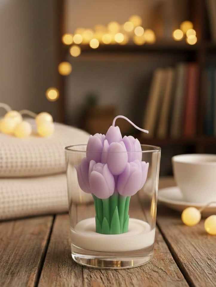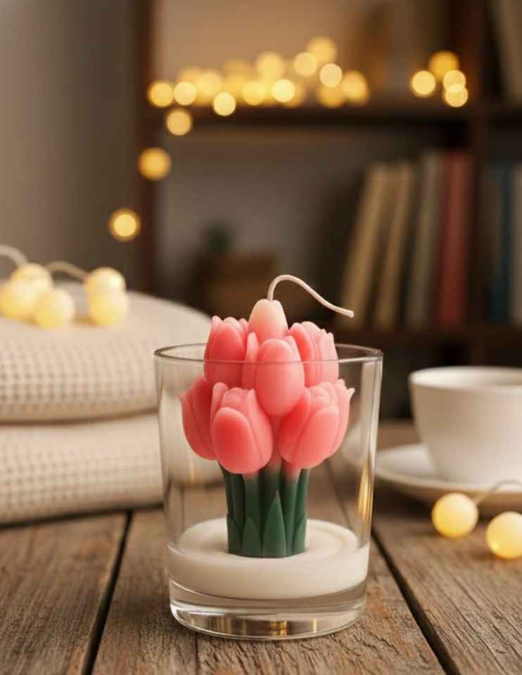 เทียนหอมกลิ่นดอกทิวลิปในแก้ว ดีไซน์สร้างสรรค์ ช่อดอกทิวลิป ตกแต่งบ้าน ของขวัญวาเลนไทน์