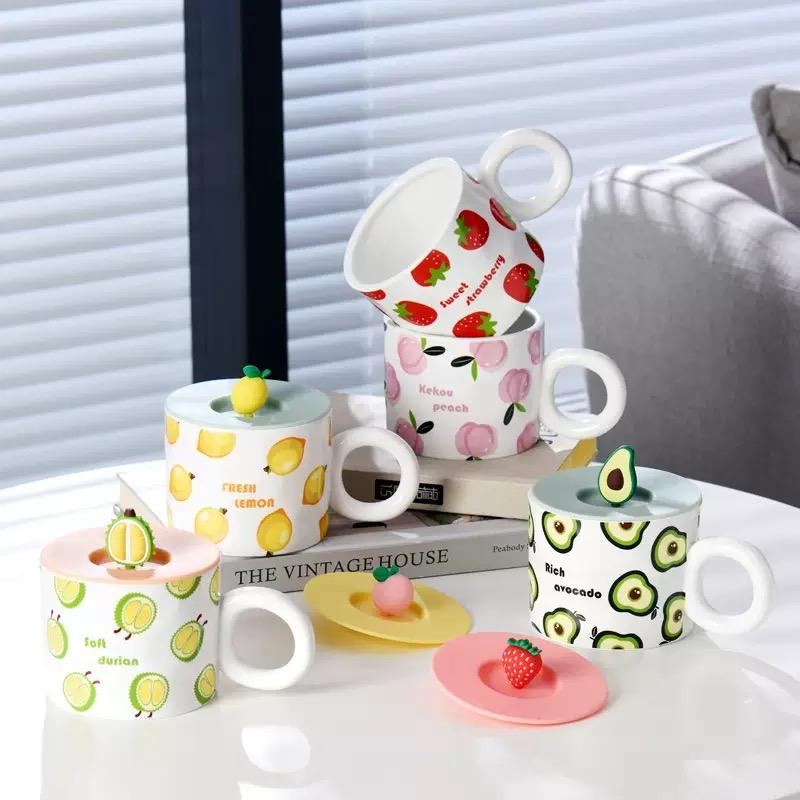 Description:Fruit Pattern with matching plastic lid ceramic coffee mug