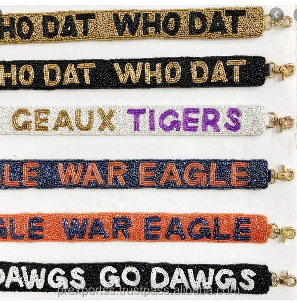 สร้างสรรค์สำหรับ DAT geaux Tigers War Eagle Go dawgs สายคล้องทำด้วยมือเย็บปักลายเองทนทานเข็มขัดคาดไหล่กระเป๋าลูกปัดมีสไตล์