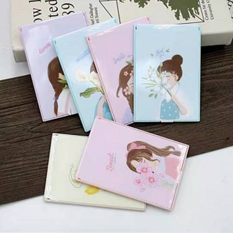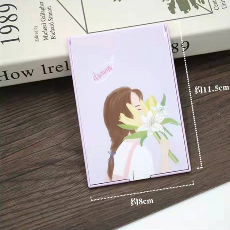 กระจกแต่งหน้าความละเอียดสูงแบบพับได้แบบพกพากรอบพลาสติกขนาดเล็กกระจกสี่เหลี่ยมเดสก์ท็อปกระจกหอพักนักเรียน
