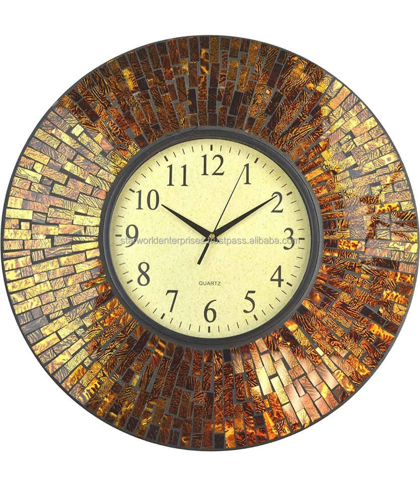 นาฬิกาติดผนังทำจากไม้แข็งแบบไม่เจาะรูสุดสร้างสรรค์นาฬิกาแขวนผนังสไตล์อาร์ตเดคโคสำหรับบ้านห้องนั่งเล่นนาฬิกาตกแต่งแบบข้ามพรมแดน