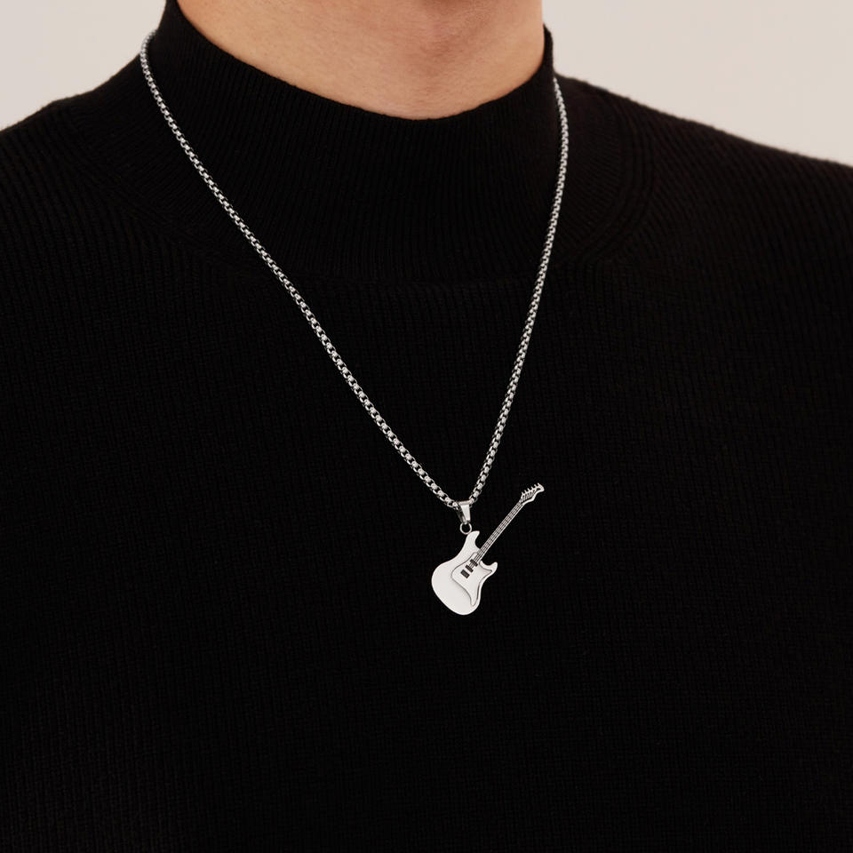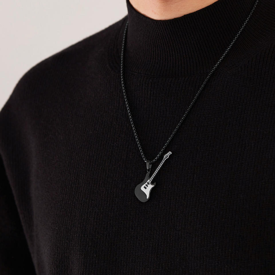 จี้ร็อคกีต้าร์ขนาดเล็กที่ไม่เหมือนใครสร้อยคอสแตนเลสสตีลแฟชั่นแนวสตรีทสไตล์อินสไตลส์เหมาะสำหรับผู้ชายเครื่องประดับ