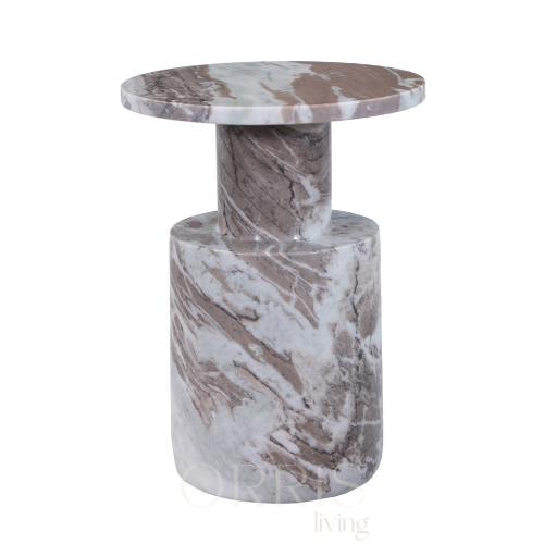 ตู้ข้างเตียงห้องนอนลายหินอ่อน Crema Fantasy เฟอร์นิเจอร์ตกแต่งทันสมัย ทำมือ ทนทาน ฐานทรงกระบอก เหมาะสำหรับอพาร์ทเมนต์