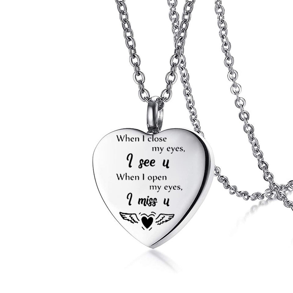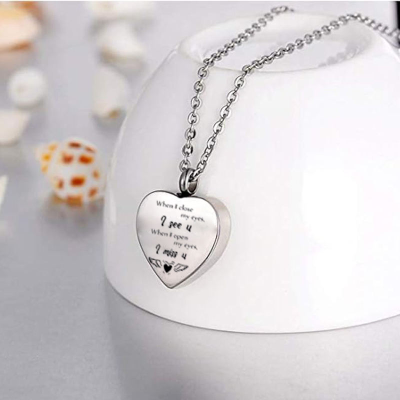 เครื่องประดับสำหรับงานศพที่ทำจากสเตนเลสจี้สำหรับสัตว์เลี้ยงเพื่อการระลึกถึงงานศพของมนุษย์เมื่อฉันหลับตาฉันคิดถึงคุณ