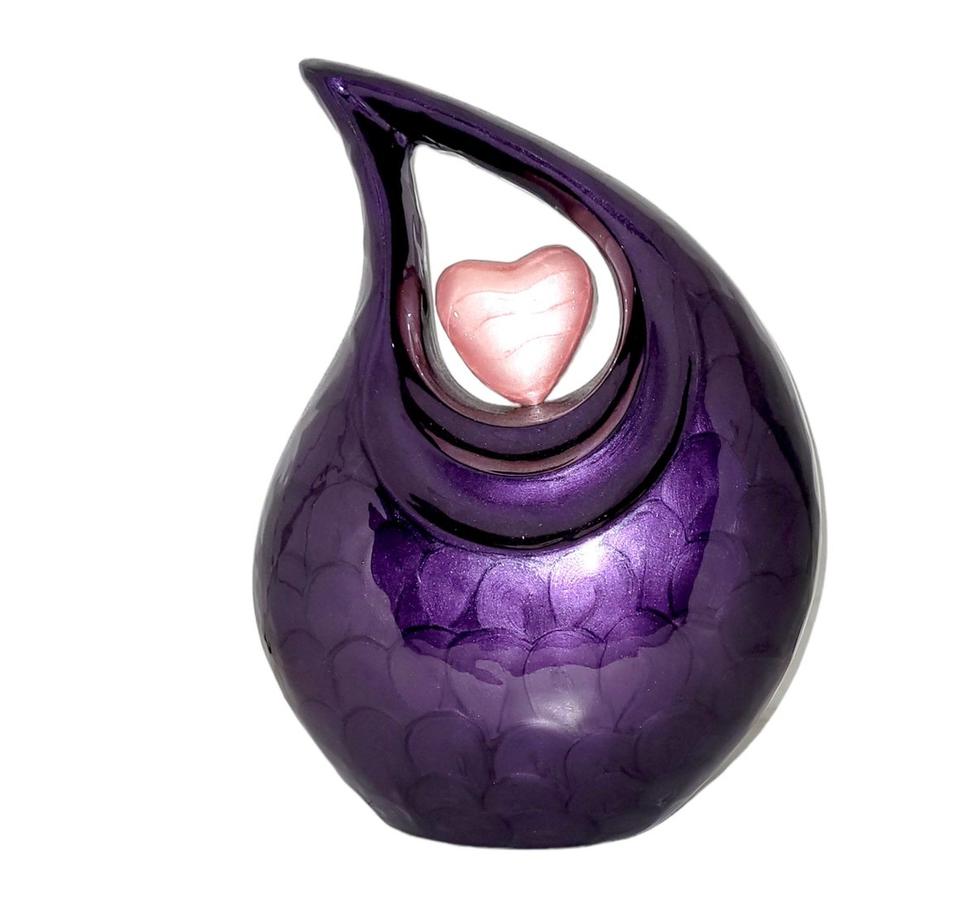 Cremation Urns for Human Ashes for Burial Columbarium Tear Purple Colour 27 Cms with pink Heart