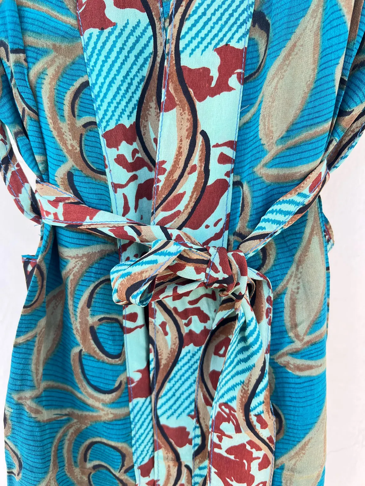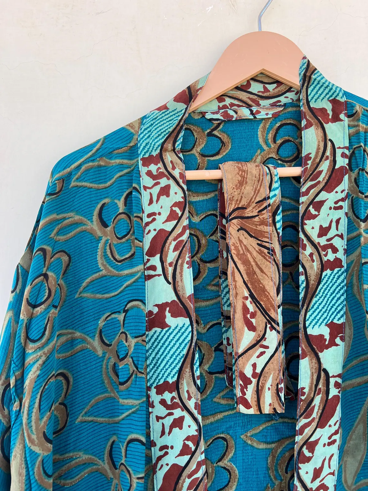กิโมโนผ้าไหมเครปชุดคลุมผ้าไหมวินเทจทำด้วยมือชุดกิโมโนผ้าไหมส่าหรี