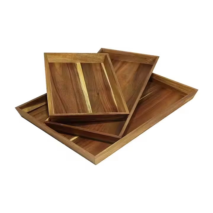 ถาดไม้ทรงสี่เหลี่ยมทำมือจากไม้กระถินณรงค์แท้ 100% ปลอดภัยสำหรับอาหาร เป็นมิตรต่อสิ่งแวดล้อม สำหรับจัดเก็บอาหาร ใช้ในครัวเรือน บนโต๊ะอาหาร จาก Crescent Crafts