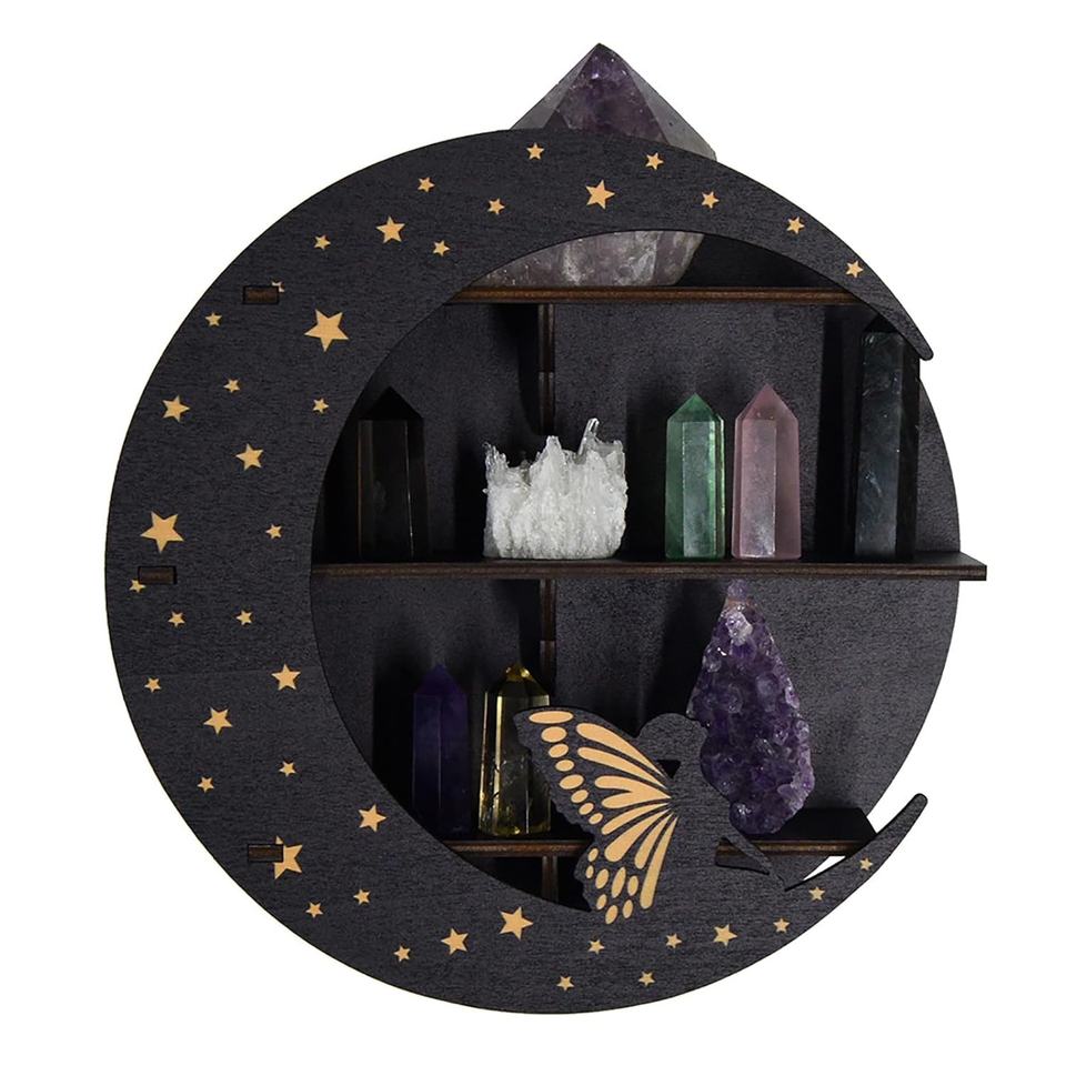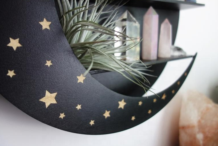 ชั้นวางของติดผนังรูปพระจันทร์เสี้ยวและดาว จำหน่ายจำนวนมาก ขั้นต่ำในการสั่งซื้อ ชั้นวางของไม้แบบลอยตัวสำหรับตกแต่งภายในบ้าน