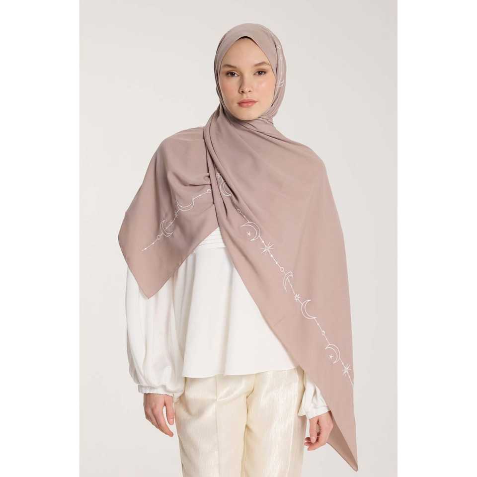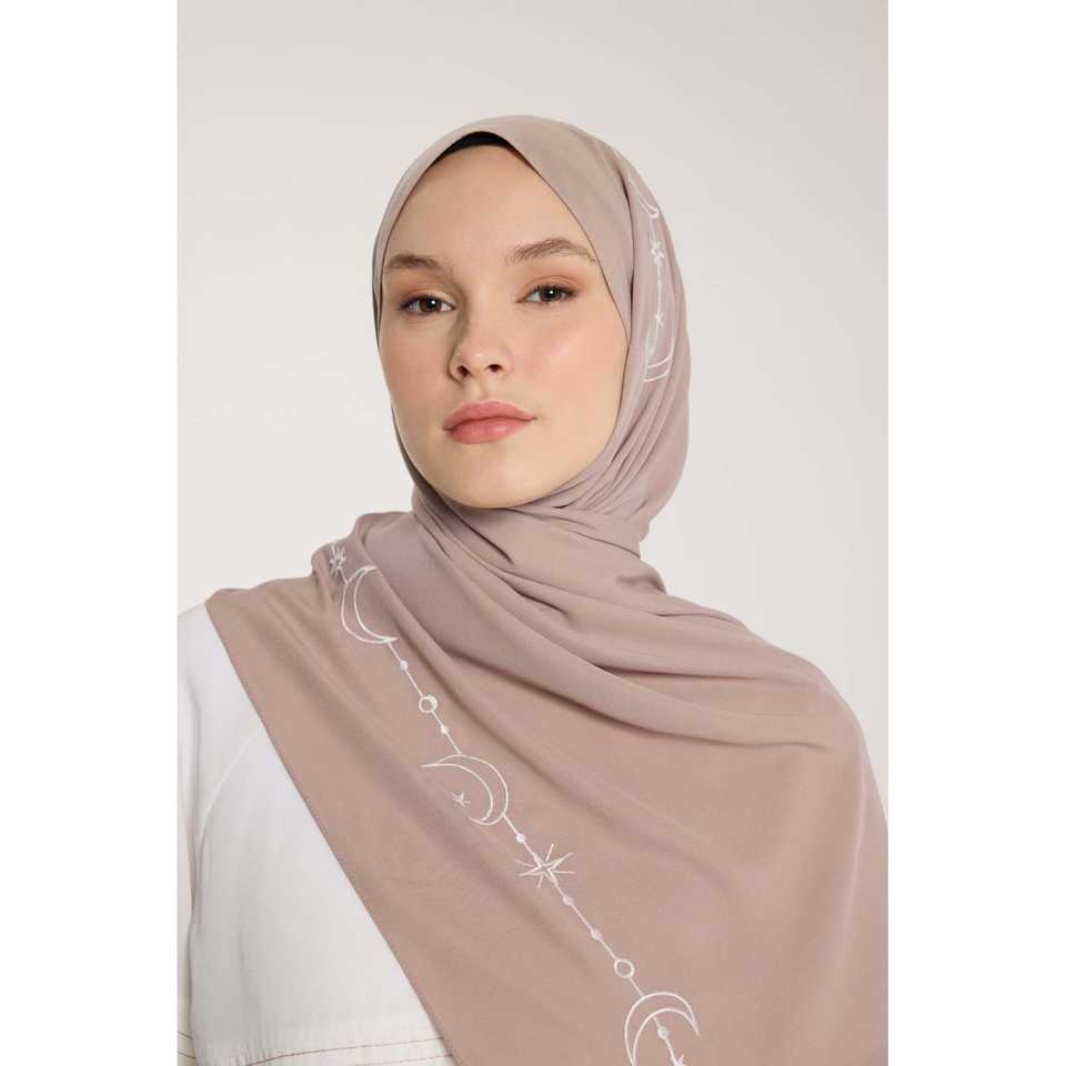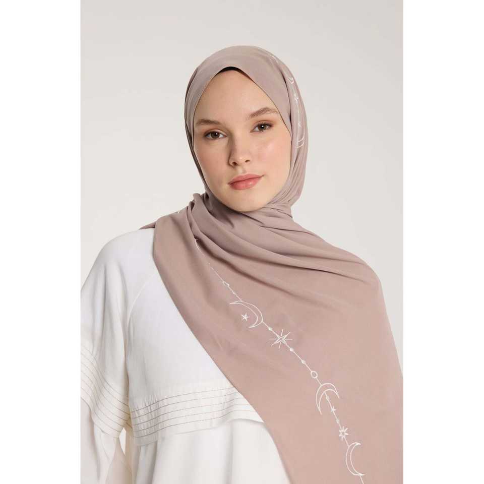 ผ้าคลุมไหล่ปักลายเส้นโค้งสีขาวมิงค์ ผ้าชีฟองวิสโคส สำหรับผู้หญิง ผ้าคลุมศีรษะอิสลาม เนื้อผ้านุ่มละมุนผิว
