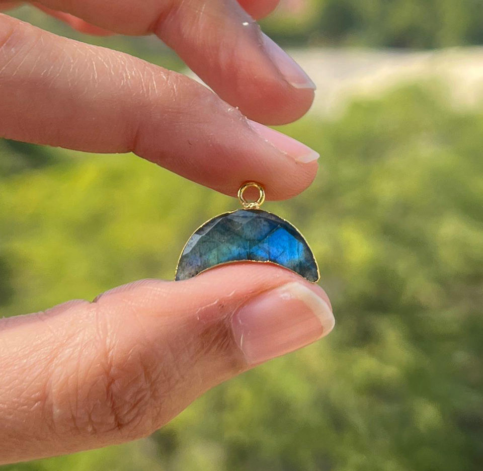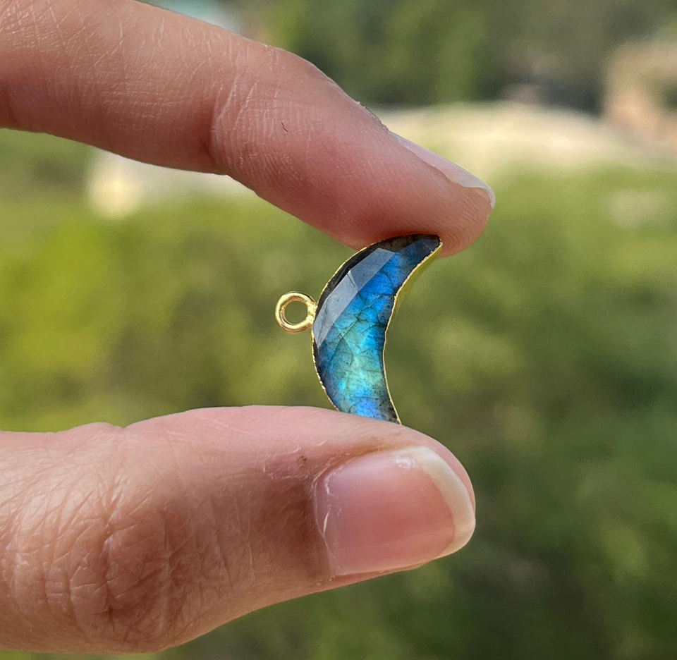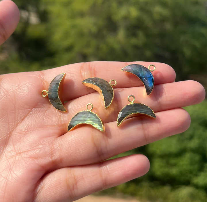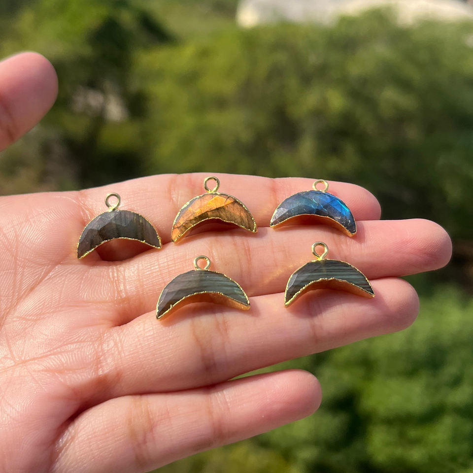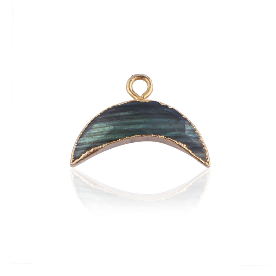 จี้รูปพระจันทร์เสี้ยวประดับลาบราดอไรต์ธรรมชาติชุบทองสำหรับทำเครื่องประดับ สร้อยคอ จี้ และตัวเชื่อมต่อต่างหู