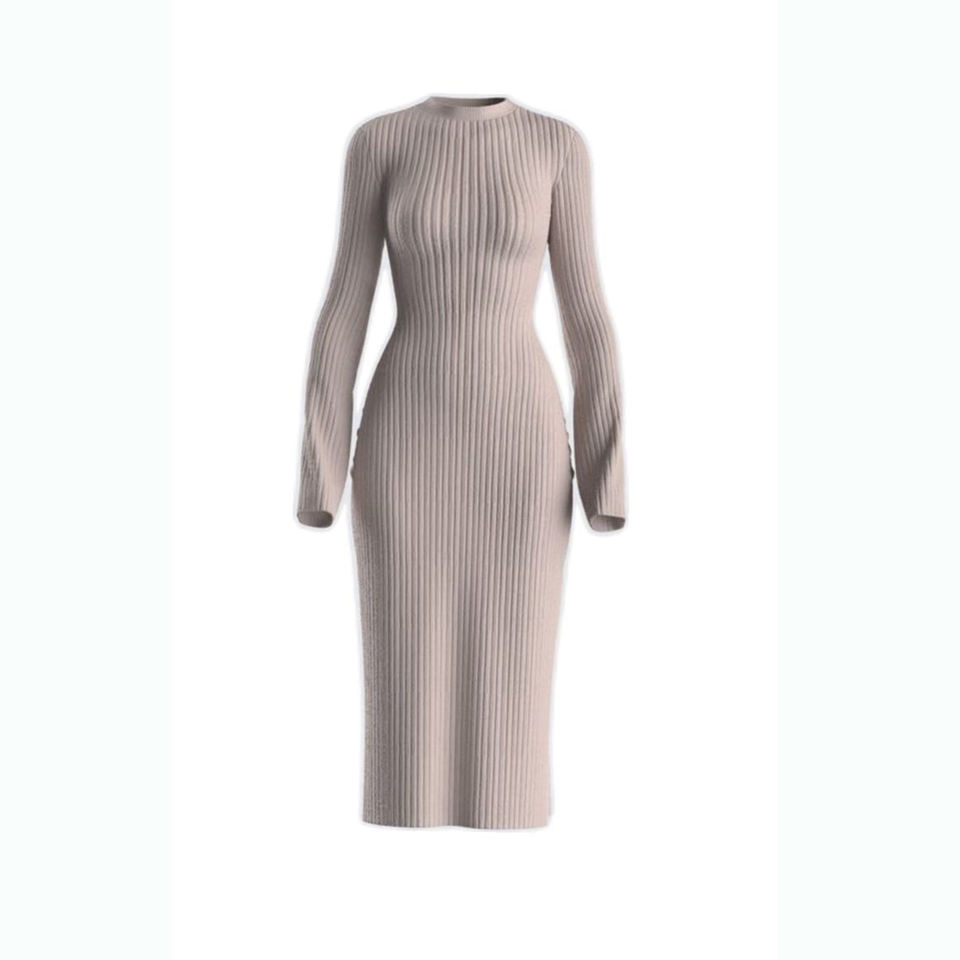 เดรสไหมพรมคอโอเวอร์ไซส์สีชมพู แขนยาว ทรงหลวม ยี่ห้อ Crest Knit รุ่น Winter สำหรับผู้หญิง