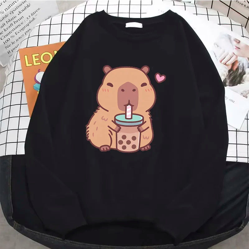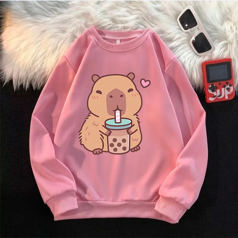 เสื้อสเวตเตอร์คอกลมมีฮู้ดแฟชั่นคอกลมมีฮู้ดลายกราฟิกสวยงามใส่ได้ทั้งชายและหญิง
