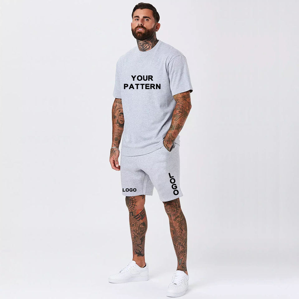 ชุดเสื้อคอกลมสำหรับเสื้อยืดผ้าฝ้ายกางเกงขาสั้นและเสื้อยืดสำหรับผู้ชายชุดเสื้อยืด2ชิ้นผ้าเจอร์ซีย์ธรรมดาออกแบบได้ตามต้องการ