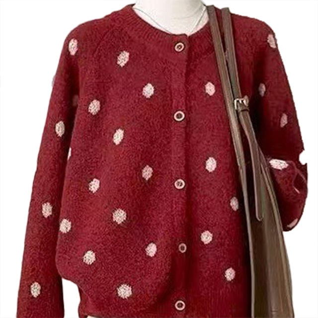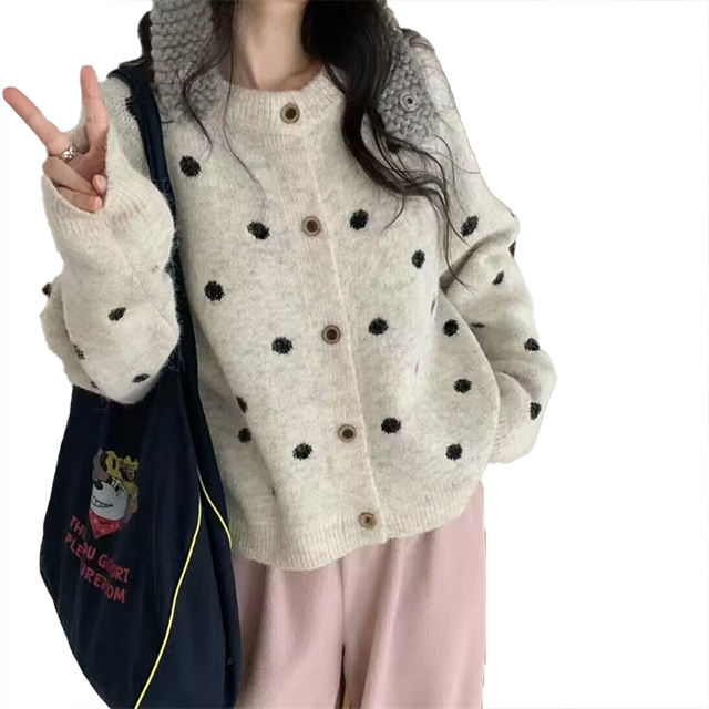 เสื้อคาร์ดิแกนถักลายจุด คอกลม ผู้หญิง รุ่นใหม่ ฤดูใบไม้ร่วง ฤดูหนาว 2026 สไตล์หลวม สบายๆ ใส่ได้หลายโอกาส