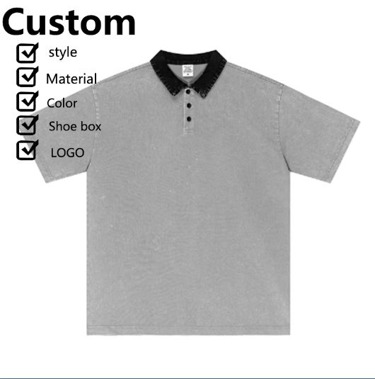 เสื้อโปโลคอกลมทรงหลวมวินเทจเสื้อโปโลพิมพ์ลายฉีดตรง100ผ้าฝ้ายแขนสั้นเสื้อดอง