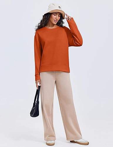 เสื้อสเวตเชิ้ตคอกลมสำหรับผู้หญิงแขนยาวน้ำหนักเบาสวมใส่สบายเหมาะสำหรับโยคะและลำลอง