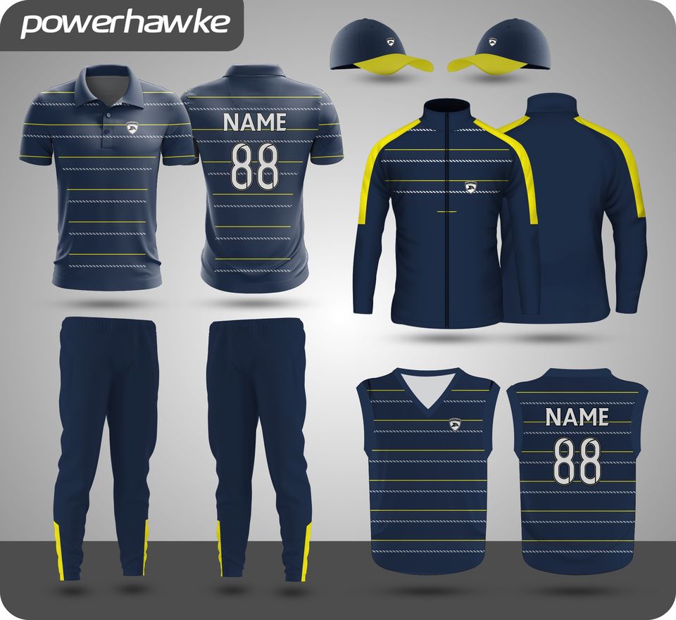 ชุดกีฬาคริกเก็ตครบชุดสีสวยและโลโก้ชื่อทีมปรับแต่งได้