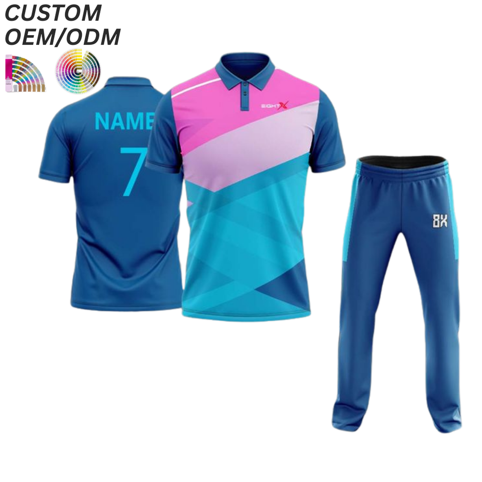 เสื้อทีมคริกเก็ตสั่งทำพิเศษ พิมพ์ลายได้ตามต้องการ ชุดกีฬาเนื้อผ้าแห้งเร็ว รับผลิตแบบ OEM ODM สำหรับขายส่งเสื้อผ้า